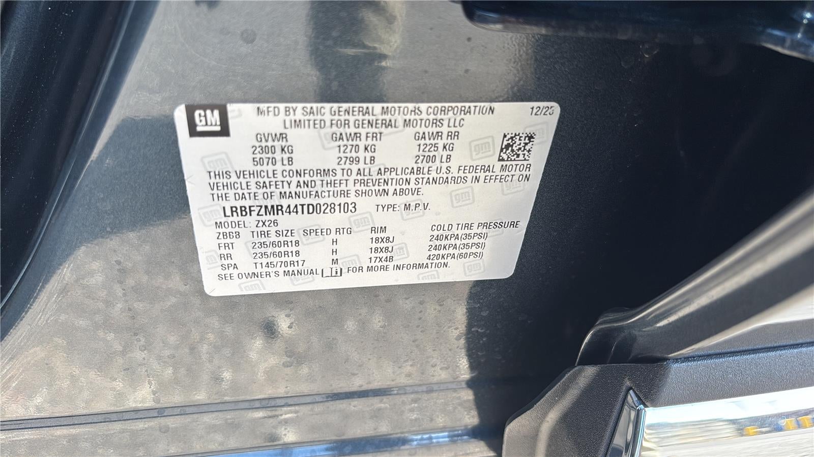 - Tires, P235/60R18 all-season