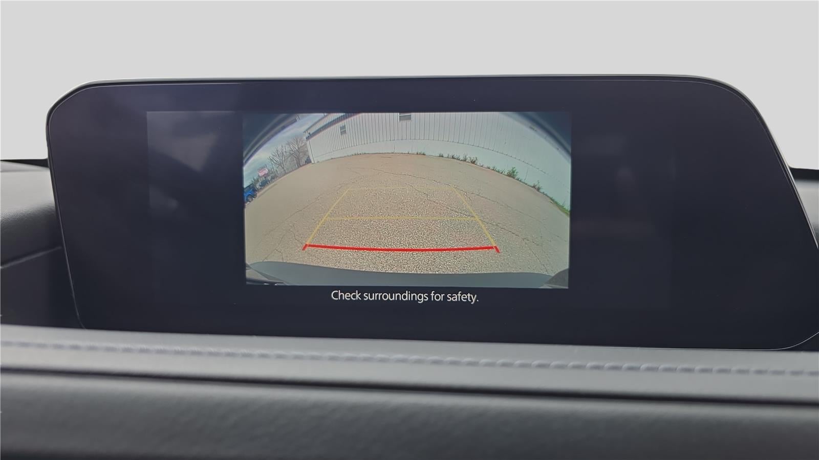 - The vehicle is equipped with a camera that displays an image of the area behind the vehicle on an interior display.